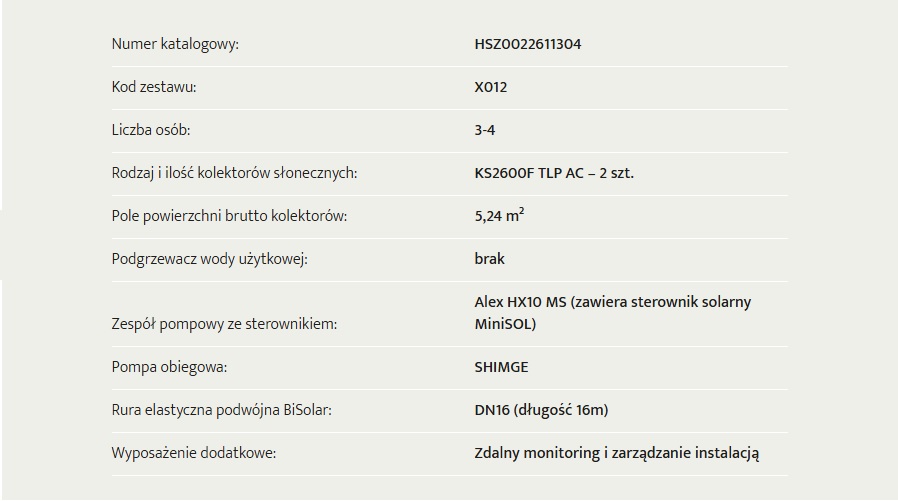 - Rodzaj i ilość kolektorów słonecznych: KS2600F TLP AC – 2 szt.
