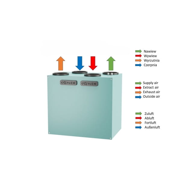 - wysoka efektywność energetyczna – urządzenia Oxygen z zaawansowanymi płytowymi krzyżowo-przeciwprądowymi wymiennikami ciepła spełniają wymagania najwyższej klasy energetycznej A+ i oszczędzają nawet do 93% energii